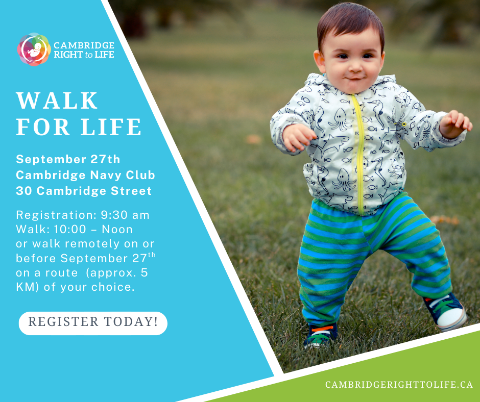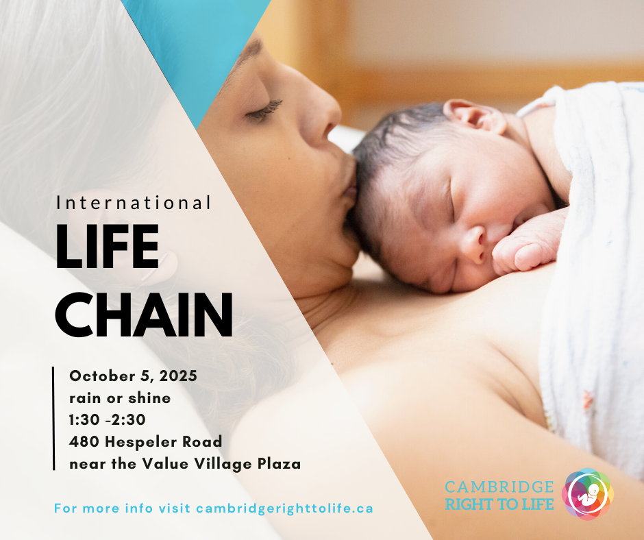 Cambridge Right to Life is a registered not-for-profit pro-life organization whose mandate is to educate the community on abortion and related life issues. We provide a voice for the unborn, women hurt by abortion, the infirm, those with disabilities and the aged.